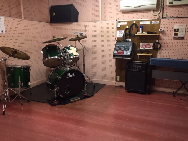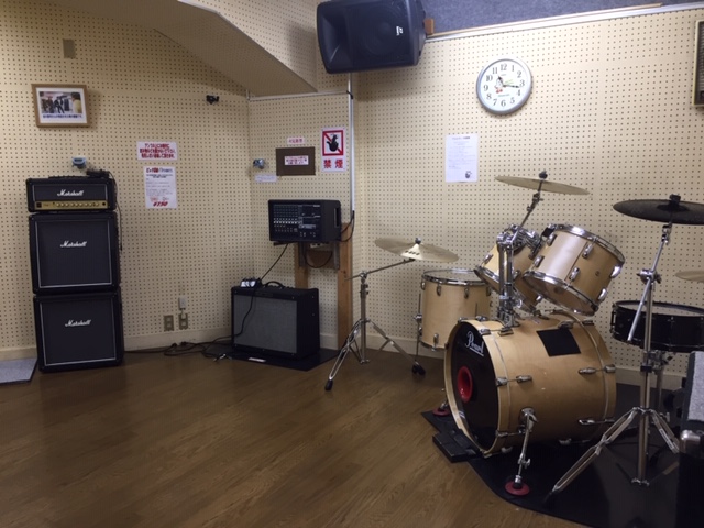 横川駅から徒歩2分、3部屋のレンタルスタジオにドラム、アンプ、譜面台などを